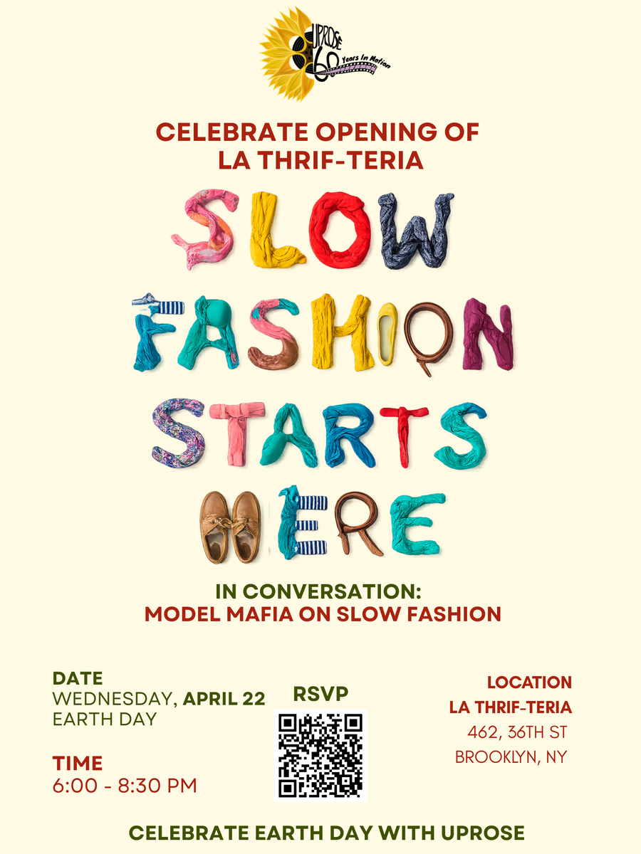 What does it mean to dress intentionally in a world of endless consumption? On Earth Day, UPROSE is celebrating the opening of LA THRIF-TERÍA, our community-owned thrift store, with a live conversation on slow fashion, sustainability, and why fashion is a climate justice issue.